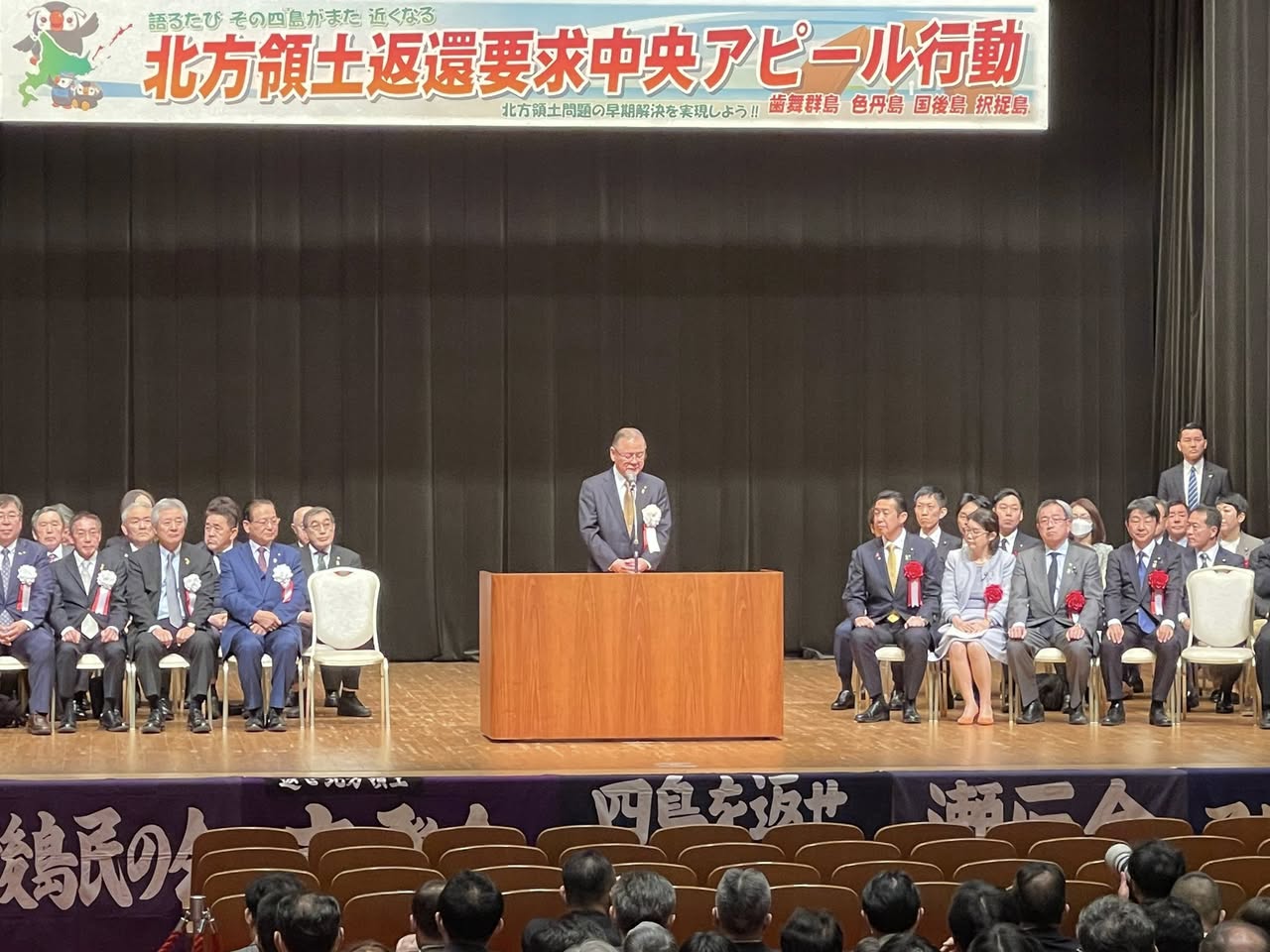 当日は、鈴木知事をはじめ、北方領土に隣接する市町村の首長の皆さま、北海道議会議員、市町村議員の皆さまなど、多くの参加者が北海道から上京されました。