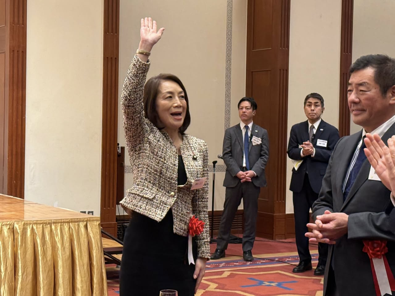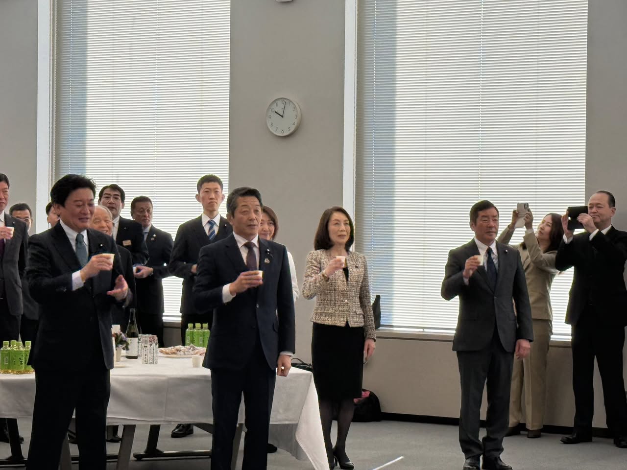 **唐神会長**をはじめ、皆さんと一緒に写真も撮らせていただき、和やかな雰囲気の中でご挨拶をさせていただきました。