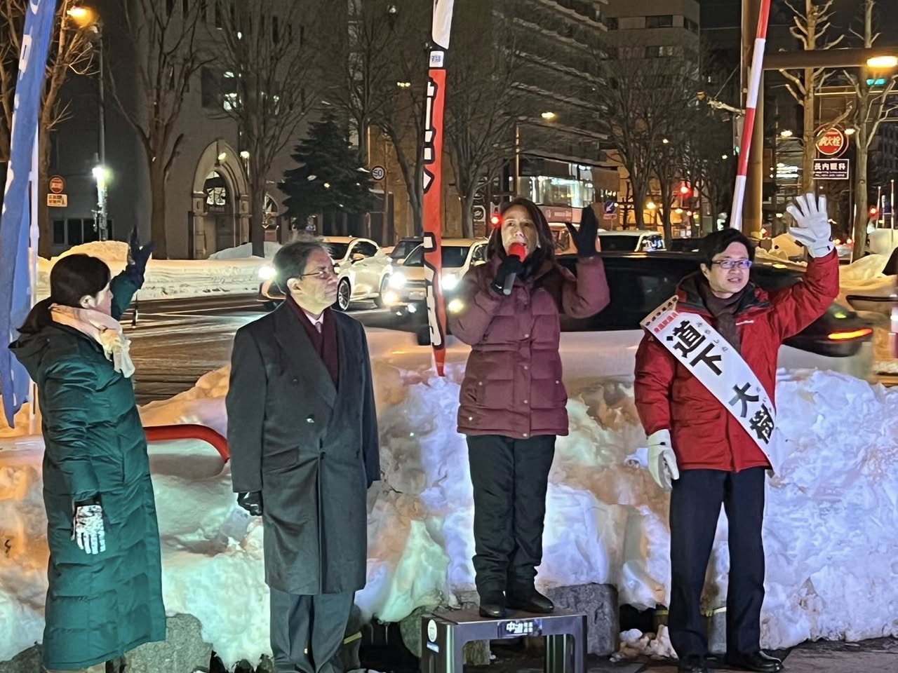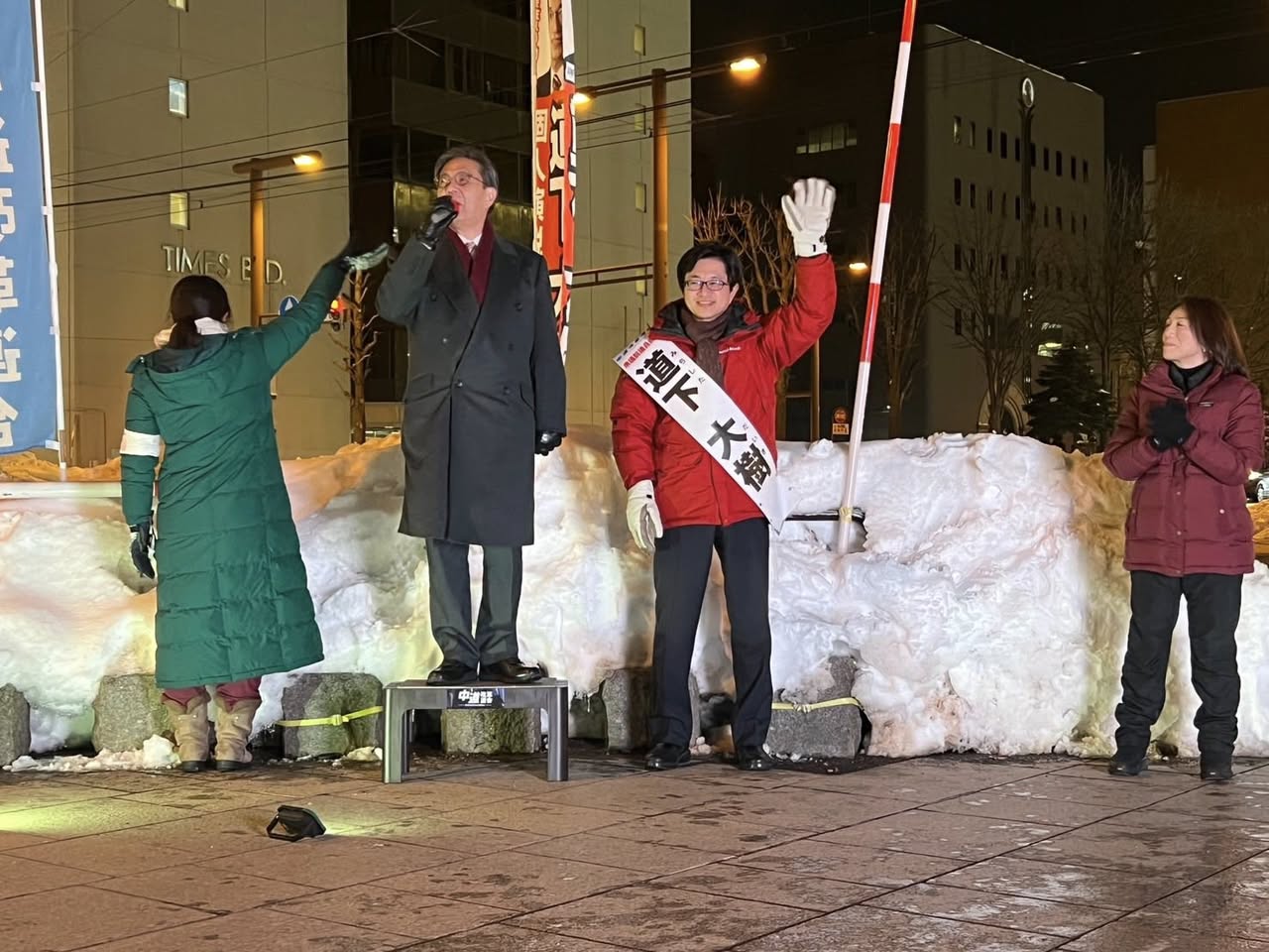 北海道1区・道下大樹候補の応援で一日を締めくくり