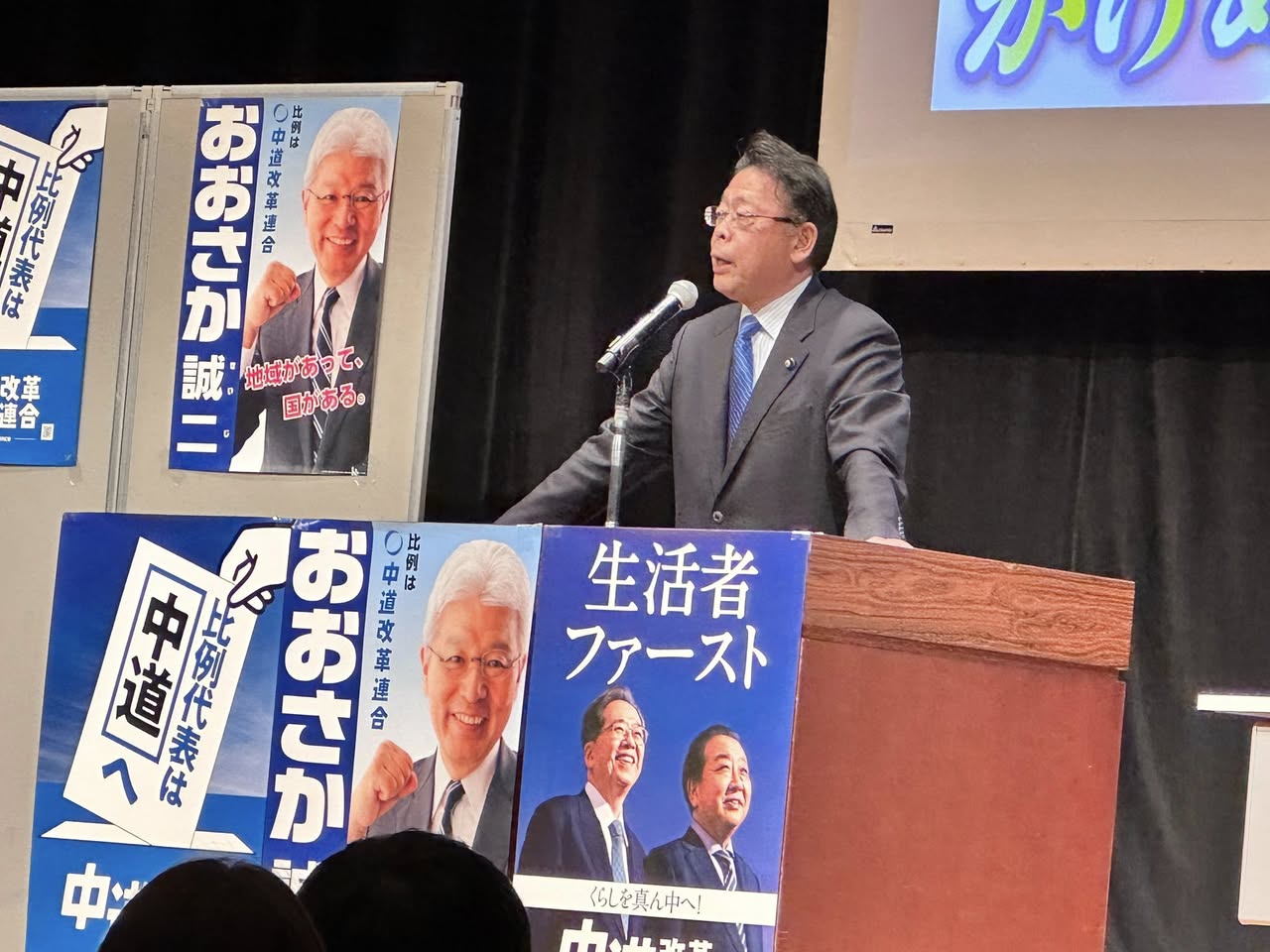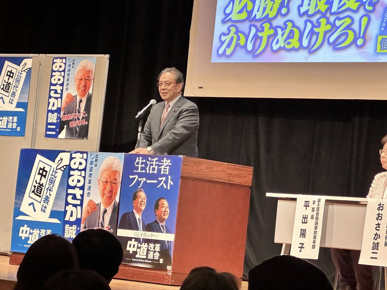 当日は、立憲民主党の水岡代表、公明党の西田幹事長、横山道連代表代行からも力強い応援のご挨拶があり、会場は大きな熱気に包まれました。