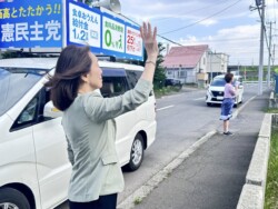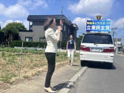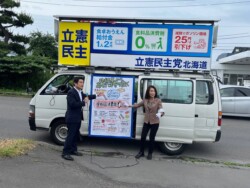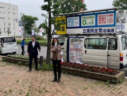 白石区では、篠原すみれ札幌市議会議員とともに政連車での遊説活動を実施。白石の皆さまにも、立憲民主党のビジョンを分かりやすくお伝えすることを心がけました。