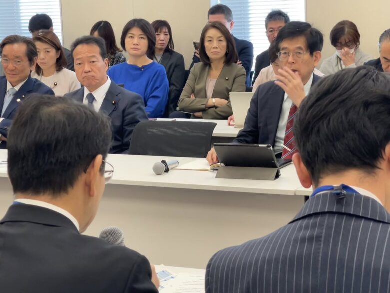 午後4時からは、衆議院に続き参議院でも予算委員会の理事懇談会が開かれ、赤澤大臣から訪米報告が行われました。