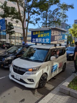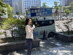 今日は朝から、「北海道選挙区は勝部けんじ、比例区は立憲民主党」の連呼をしながら、札幌市内を駆け巡りました。昼までに5箇所で街頭演説を実施。真夏のような暑さの中ではありましたが、多くの方から励ましのお声をいただき、むしろこちらが力をもらっています!元気いっぱい、ご支援のお願いを続けています。